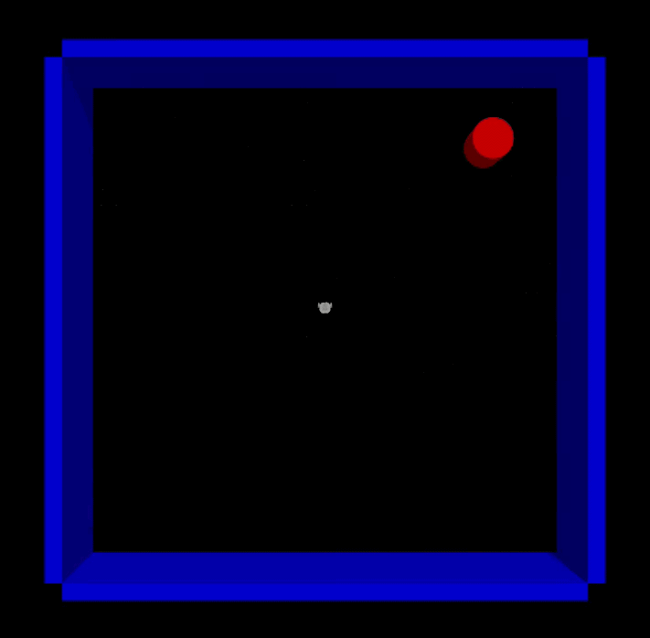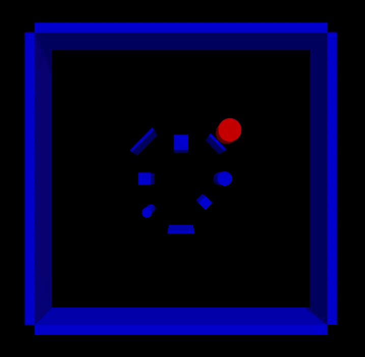- Phase 2.1: The same setup as Phase 1.1, except the same obstalce is placed at the same spot for each episode. The robot should be able to navigate through the obstalce on its path to the goal position at the end of the training.