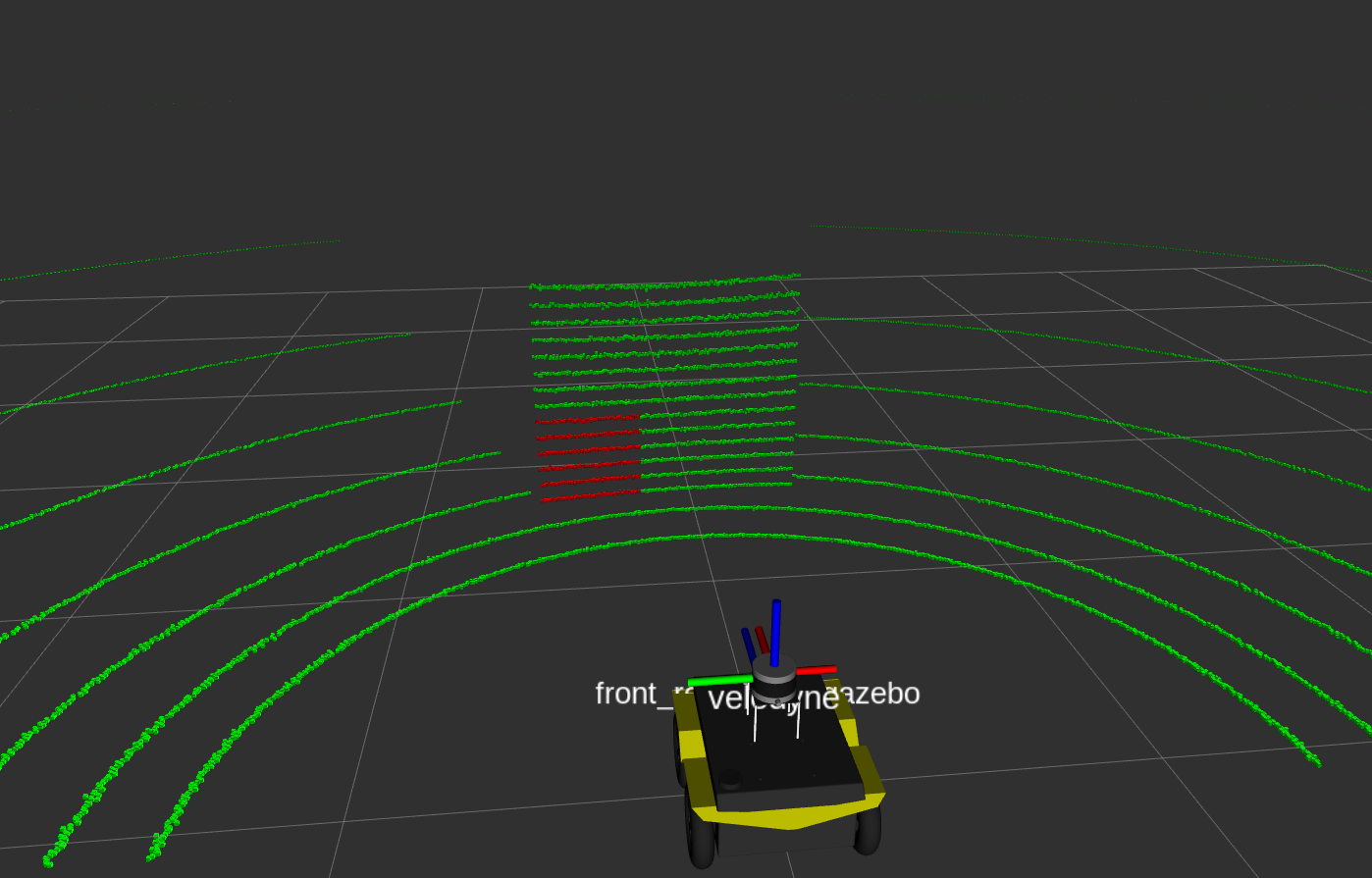 A calibration ROS package is developed to find the extrinsic parameters between the Velodyne LiDar and Realsense camera. The point cloud colorization algorithm is accomplished by the transformation from point cloud 3D coordinates to image pixel coordinates. Thus, an accurate extrinsic parameter is crucial for good alignment between point clouds and images. Since the Realsense camera provides point cloud messages created by an active infrared stereo, the calibration task becomes easier as we only need to align two clusters of point clouds from two sensors. The package can also calibrate the extrinsic between two sensors that receive point clouds, such as two LiDars. The target object required for this project can be any rectangular prism or rectangular board. The calibration algorithm requires three corner coordinates from one face of the target object. Two ROS services are used to find and store the reference points. The following image shows an example to find one reference point from LiDar point cloud data.
