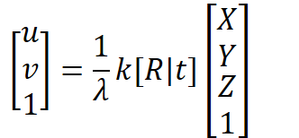 The left side of the equation is the homogenous representation of pixel coordinates in the camera plane, while the right side consists of λ (the value of Z after 3D coordinates have been transformed), k (the intrinsic matrix), R (the rotation matrix), t(the translation matrix), and the homogenous representation of point cloud coordinates in the camera frame.